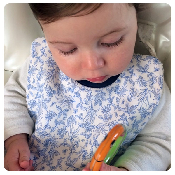Une jolie popeline de coton imprimée, une éponge aussi douce qu’absorbante, un biais coloré pour relever le tout… Voici un bavoir chic et tendance, indispensable pour tous les dîners en ville ! Fabriqué en France dans des matières exemptes de substances nocives, il respecte et protège la peau fragile des loupiots. D’un format idéal pour défier purées et compotes en tous genres, c’est l’accessoire incontournable pour être au top dans sa chaise haute !