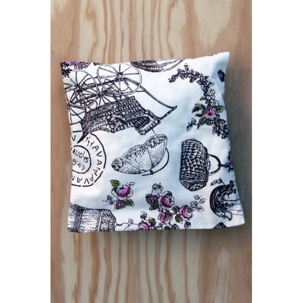 Intérieur : enveloppe coussin 100 % coton - noyaux de cerises lavés et séchés sans additifs chimiques. Coussin noyaux de cerises non lavable.