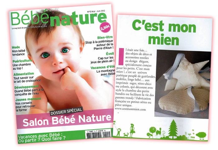 - 25 octobre 2012 : comme coup de coeur du salon Baby Paris sur maman2tilou