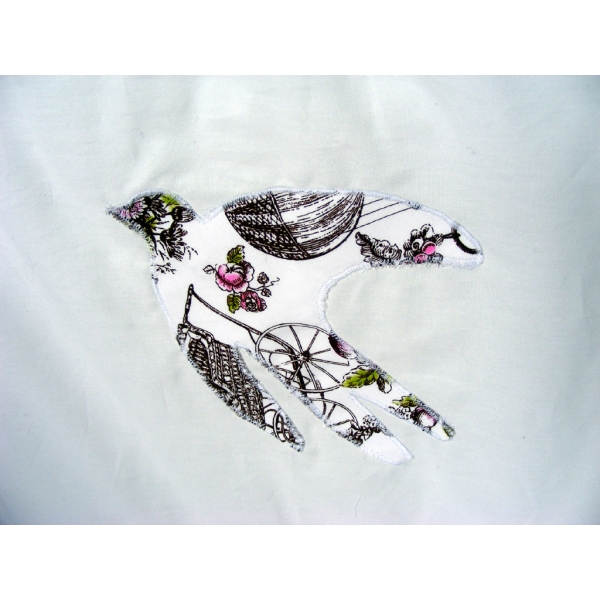 2 côtés : côté pile imprimé, côté face uni avec appliqué hirondelle.